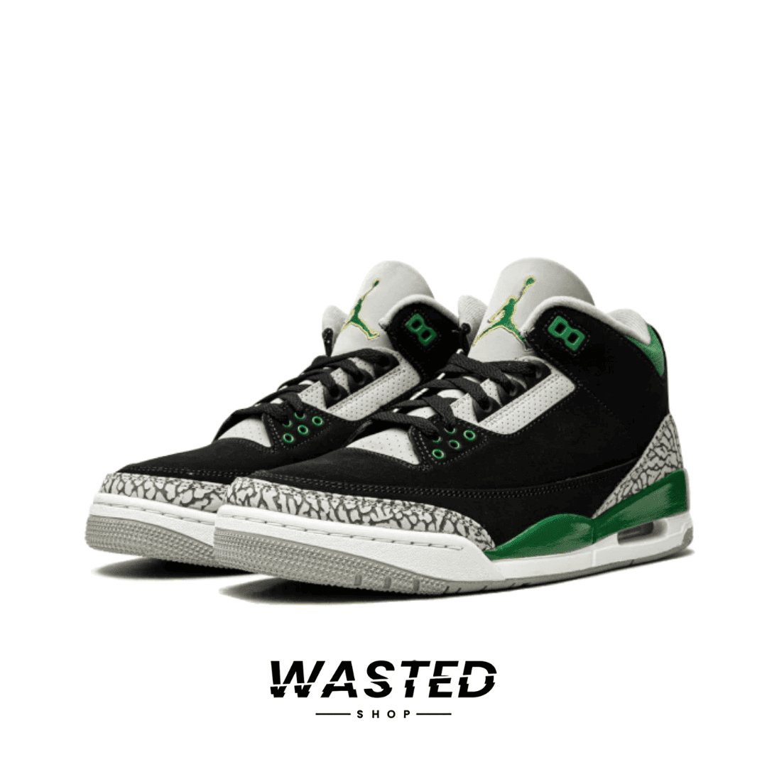 Los Air Jordan 3 Retro Pine Green fusionan el legado del basketball con la estética moderna del streetwear. Su combinación de nubuck negro, detalles en verde pino y el clásico elephant print los hacen imprescindibles para quienes viven y respiran la cultura sneaker.